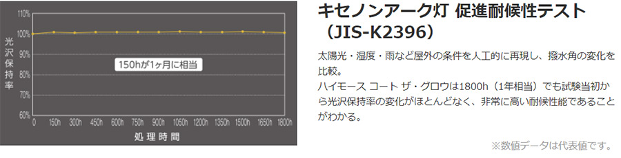 過酷な気象環境にも、ハイモース コート ザ・グロウの強固な被膜が長期にわたって艶性能を維持し、