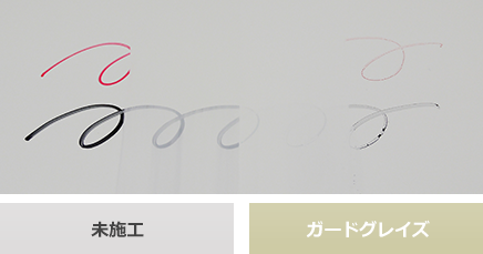 ガードグレイズを施工した面は、油性マーカーの付着が少ないことがわかる。