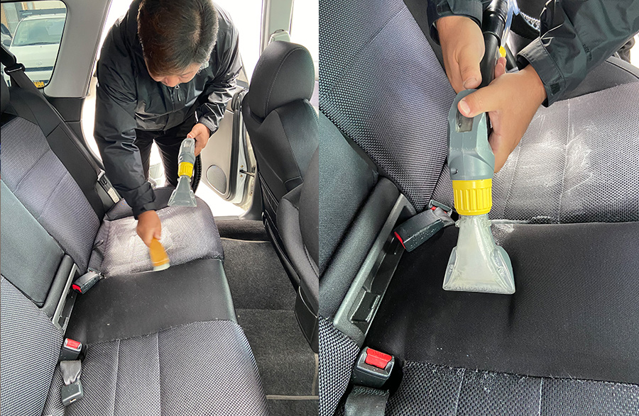 まさに、「徹底的」に車内をクリーニング。
