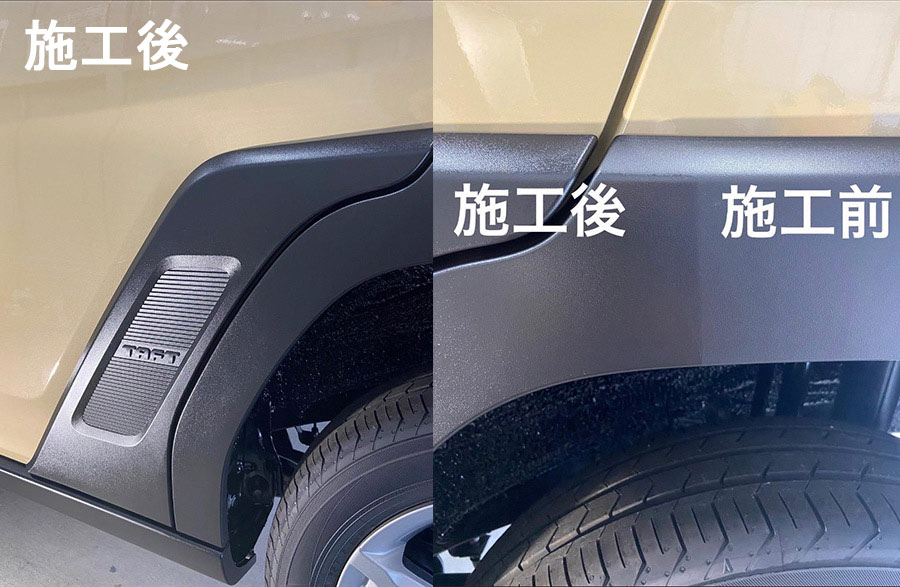 未塗装樹脂パーツが白っぽくなると、車のカッコよさは半減して古っぽく見えてしまいます。車をカッコよく、